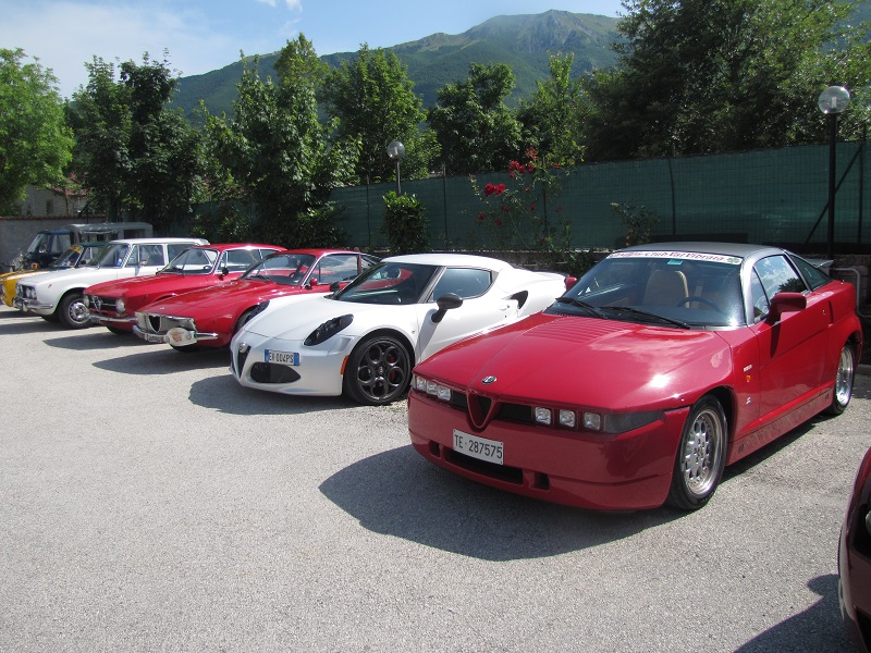 Con partenza da Nereto intorno le dieci e mezza, nella mattinata di sabato 26 luglio, l’AlfaClub Val Vibrata si è recato volentieri nel paesino in provincia di Rieti, facendo prima sosta nell’affascinante scenario del lago di Scandarello durante il tragitto. Appena arrivati, il buon Stocchi, non ha esitato sin da subito a renderci omaggio con il suo umorismo ed ospitalità, salutando tutte le vetture mandandole un saluto e inchinandosi non appena ne vedesse una da vicino. Il tutto è proseguito durante l’ottimo pranzo dove siamo stati bene tutti insieme al proprietario del locale che ci ha intrattenuto raccontandoci qualche interessante sua “avventura” automobilistica passata.Prima di andare via è stato sempre bello e curioso visitare il garage delle Alfa del signor Stocchi, dove non solo grazie alle vetture presenti (una Giulietta TI, una Giulia da corsa, un Romeo e una Alfetta prima serie), ma anche ai gadget, ai poster, ai modellini e alle frasi che sono sulle pareti, l’atmosfera trasmetteva passione Alfa da ogni poro! Noi dell’AlfaClub Val Vibrata teniamo a sottolineare il nostro vero “DNA Alfista” ancora una volta, dove in una “semplice” passeggiata, oltre alla stupenda Alfa 2000 berlina del socio e consigliere del Club Antonello Polidoro, erano presenti un GT 1300, una Junior Zagato, una SZ, una Brera e una 4C … come fosse una evoluzione delle coupè della casa del Biscione. La Nostra è una passione a 360 gradi, che segue ininterrottamente il marchio Alfa in tutte le sue evoluzioni, non siamo fermi al passato, che conosciamo e ci interessa come pietra miliare per tutto ciò che l’Alfa Romeo è ed è sempre stata … ma ci interessa moltissimo anche il presente e guardiamo entusiasti e con inconfondibile curiosità il futuro.