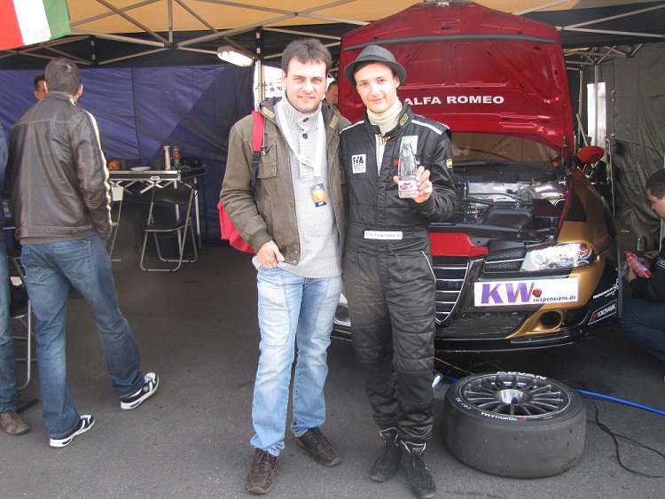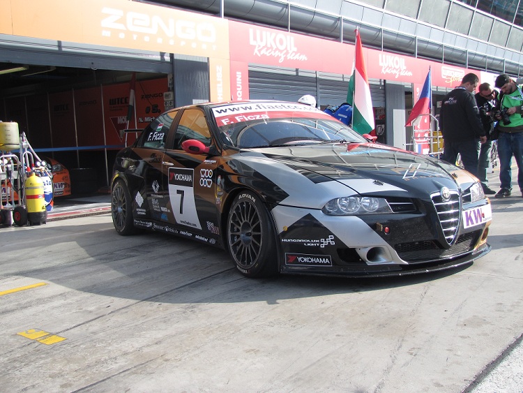 Al venerdì, primo giorno in cui ci siamo recati in autodromo, vediamo la vettura dell’XFX Unicorse per la prima volta: stupenda!! Nel guardarla rabbrividiamo, da subito ci tornano in mente tutte le battaglie in pista, le vittorie, i sogni che questa vettura ha fatto vivere! Ci ricorda tutti i pilotissimi che Lei ha avuto nei dieci anni in cui è stata protagonista ufficiale con l’Alfa Romeo nei campionati più importanti. La cosa che più mi colpisce è di come una vettura così datata è ancora capace di emozionare, incuriosire i passanti e lasciarti senza fiato per la sua bellezza! La 156 del team ungherese è quella del WTCC del 2007 della N-Technology, che era guidata da James Thompson. La vettura adesso ha una livrea nera, ma presenta all’interno e sotto i cofani ancora il rosso Alfa, così come per gli specchietti. Il paraurti posteriore è il nero originale della vettura del 2007, che era scura nella parte inferiore. Il pilota che guiderà la 156 per tutto l’ETCC è il quindicenne Ferenc Ficza. Un altro vero record quindi per questa macchina che porta al debutto il pilota più giovane nella storia di un campionato turismo FIA.