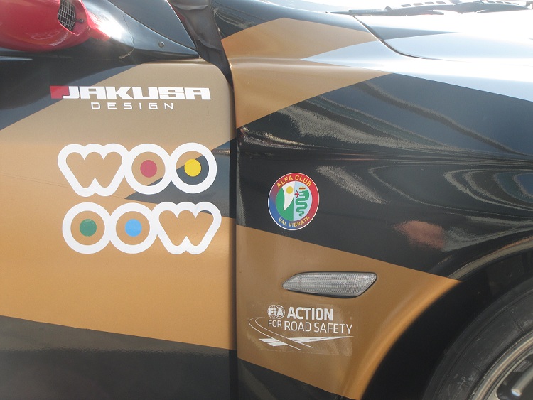 Nel team sono stati disponibilissimi e con tanta voglia di conoscerci e averci con loro nell’arco di tutte le prove e le corse. La vettura ha gareggiato con il logo dell’Alfa Club Val Vibrata sulle fiancate, da noi consegnato, posizionato sopra le frecce laterali di destra e di sinistra! Fantastico! Ne abbiamo approfittato anche per dare a tutta la squadra la nostra bottiglia “Altissima Purissima Alfissima” che tanto successo ha fatto nel corso della cena sociale del Club a Febbraio.