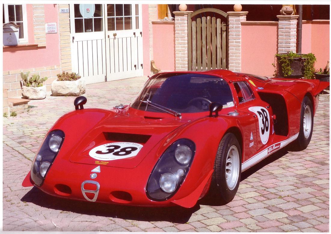 Cari amici, si è proprio vero, una rarissima Alfa T33/2, che ha disputato anche le 24 Ore di Le Mans nel 1968, si trova gelosamente custodita in un bel garage, insieme ad altri reperti Alfa Romeo, Abarth e Lamborghini. Ho avuto il piacere e la fortuna di ammirare la vettura, grazie al nostro socio Roberto Di Maio di Ortona, il quale me ne aveva parlato di recente avendola già vista.